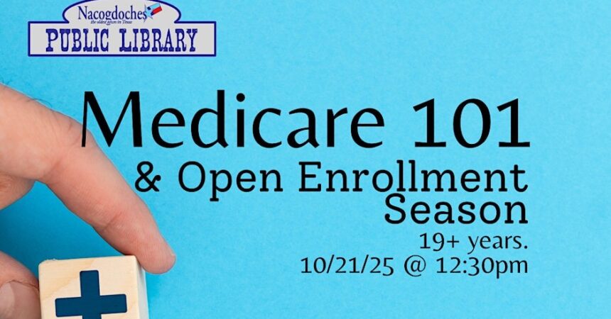 The enrollment period for Medicare opens in October. Danielle Sells will explain the various options available for Medicare coverage. This program is ideal for people nearing eligibility age, people currently on Medicare looking to make a change, or their adult children. Light snacks will be served. Feel free to bring your own lunch. For adults ages 19 & up.